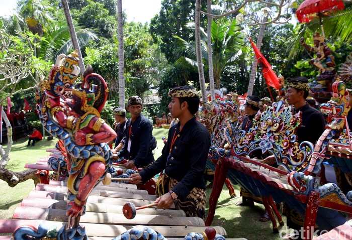 Selain menampilkan tarian Pendet, alunan musik tradisional Bali turut dilantunkan untuk memeriahkan Kongres V PDIP tersebut.