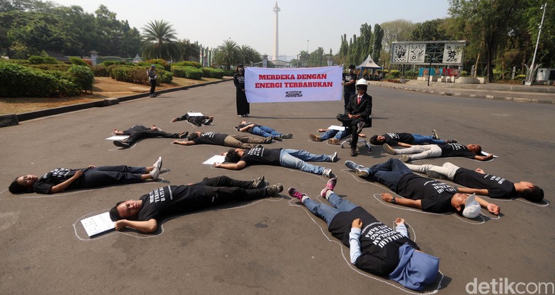aksi itu dilakukan untuk menolak penggunaan energi fosil dan batu bara, serta meminta pemerintah untuk beralih ke penggunaan energi terbarukan.