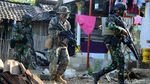 Para prajurit melakukan teknik close quarter battle (CQB) atau pertempuran jarak dekat bagi musuh yang berada di sebuah rumah.