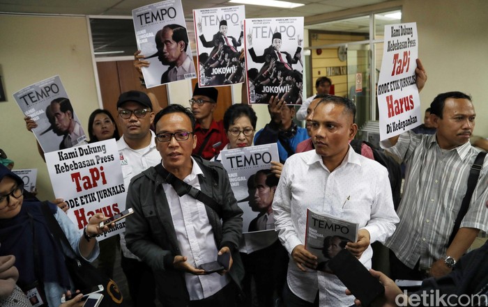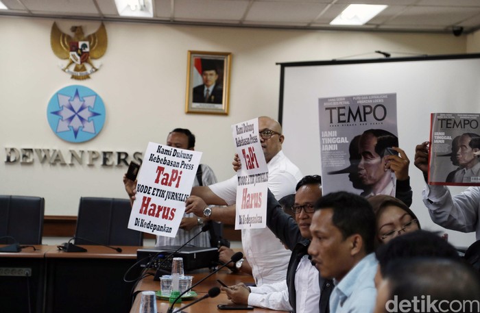 "Jadi kami telah menerima aduan dari tim JoMan terkait cover Majalah Tempo yang backgroundnya siluet adalah pinokio, nanti kami bahas internal dulu. Insyaallah minggu depan kami akan lakukan mediasi, hasil bagaimana, situasi tergantung nanti dari Tempo-nya gimana," kata Hassan.