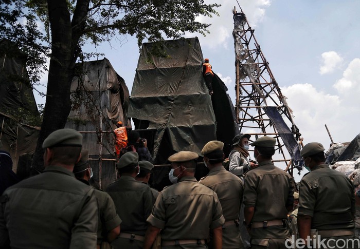 Jakarta - Pabrik arang di Cilincing, Jakarta Utara, dibongkar Satpol Jakarta karena mencemari udara. Pemilik usaha pembakaran arang itu pun menangis.