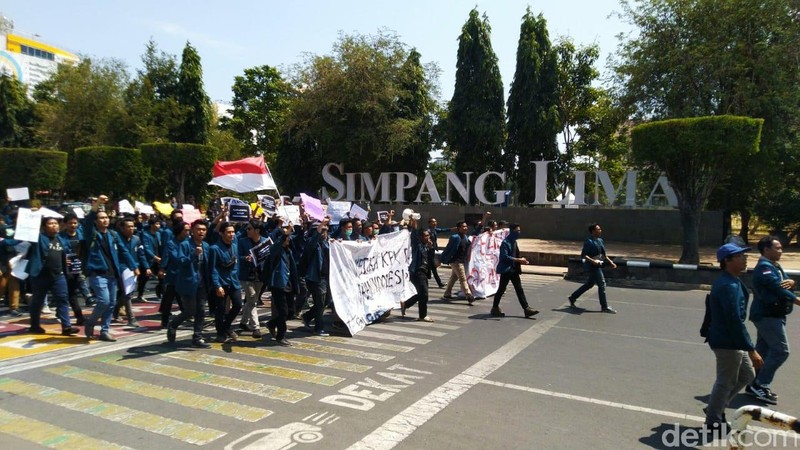 Massa yang memprotes UU KPK baru terus berdatangan ke Kantor DPRD Jawa Tengah.