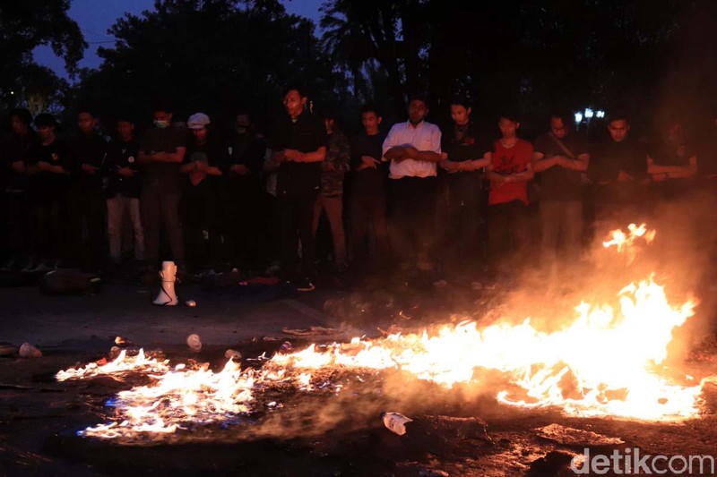 Mahasiswa Salat Berjamaah di Depan Gedung Sate BAGIKAN URL telah disalin Hingga malam hari, para mahasiswa masih bertahan di depan gedung DPRD Jabar. Mereka melakukan salat berjamaah di depan Gedung Sate. Salat dilakukan di tengah jalan. Salat berlangsung khidmat. Mereka melakukan pembakaran poster, dll, sebagai alat penerangan. Sebelumnya, kericuhan pecah sekitar pukul 16.00 WIB. Hingga kini massa masih bertahan.