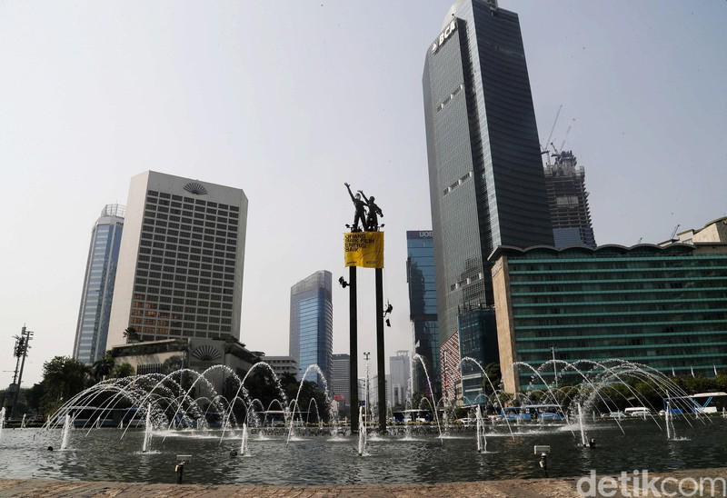 Spanduk Kuning Greenpeace Juga Mejeng di Patung Bundaran HI