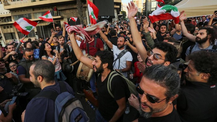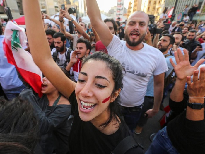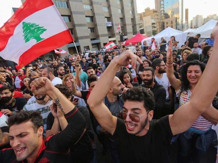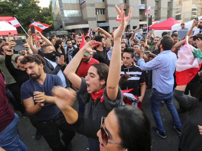 Luapan Kegembiraan Demonstran Usai PM Lebanon Umumkan Pengunduran Diri