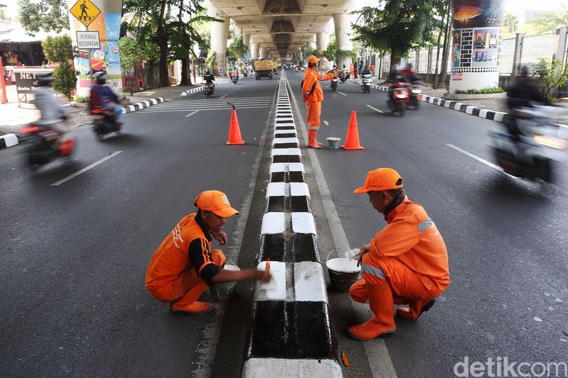Pengecatan ulang dilakukan karena warna pembatas jalan mulai memudar.