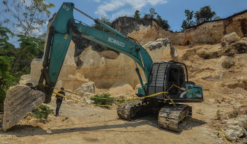 Kawasan penambangan kapur ilegal di Desa Kalipucang, Kabupaten Pangandaran, Jawa Barat, ditutup oleh Polres Ciamis, Sabtu (23/11/2019).