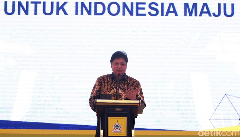Ketum Partai Golkar yang juga merupakan Menko Perekonomian Airlangga Hartarto memberikan pidato dengan tema Peluang dan Tantangan Ekonomi Digital untuk Indonesia Maju.