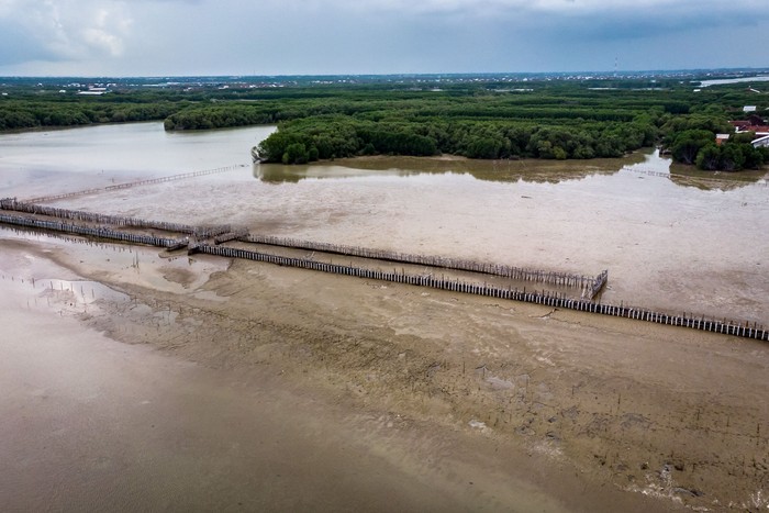 Demak - Berbagai upaya dilakukan untuk menangani abrasi di Demak, Jawa Tengah. Salah satu upaya mengatasi abrasi dengan membangun pasak konstruksi Hybrid Engineering.