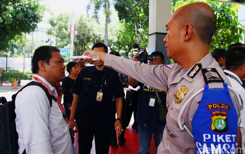 Warga yang dipersilakan masuk ke dalam gedung hanya yang bersuhu tubuh di bawah 38 derajat celcius.