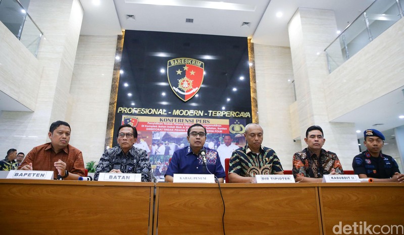 Direktorat Tindak Pidana Tertentu Bareskrim Polri memberi keterangan pers terkait Penyidikan Tindak Pidana di Bidang Ketenaganukliran di Gedung Bareskrim Polri, Jakarta, Jumat (13/3/2020).