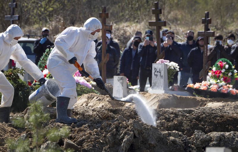 Sementara itu, jumlah korban meninggal di Rusia bertambah menjadi 2.116 orang setelah ada tambahan 107 kematian dalam sehari. AP Photo/Dmitri Lovetsky.