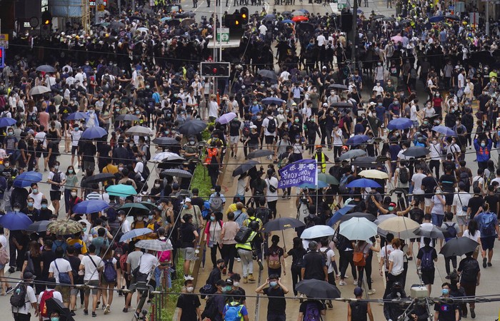 Rencana pembentukan UU Keamanan Nasional untuk Hong Kong itu pun menuai kecaman dari sejumlah aktivitas demokrasi. UU tersebut dikhawatirkan dapat mengancam kebebasan berpendapat di Hong Kong.Β AP Photo/Vincent Yu.