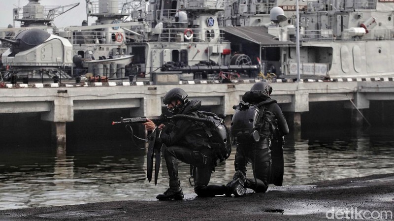 Pasukan Kopaska unjuk kebolehan dalam menyiapkan peralatan perang seperti senjata api.