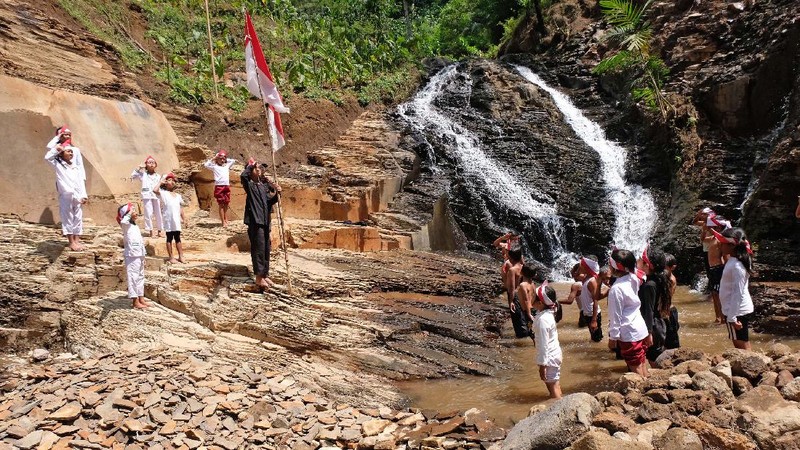 Potret Upacara HUT RI di Curug Tarung Temanggung