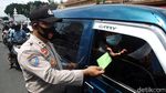Tidak hanya pemotor, polisi juga membagikan masker kepada pengendara mobil.