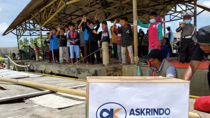 Askrindo menyalurkan bantuan berupa barang kebutuhan pokok seperti beras dan makanan kepada korban banjir di Muara Gembong Kabupaten Bekasi dan Kabupaten Karawang, Jawa Barat.