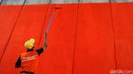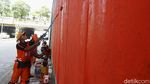 Jakarta - Penataan terus dilakukan di kawasan Tanah Abang, Jakarta Pusat. Kali ini dinding kolong jembatan dipercantik dengan cara dicat ulang dengan warna oranye.
