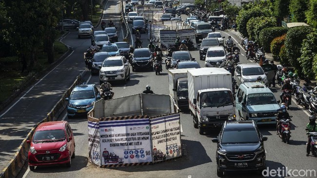 Jakarta - PT MRT melakukan pembangunan proyek fase II segmen CP 203 di kawasan Glodok, Jakarta. Proyek yang berada di tengah jalan ini kerap menimbulkan kemacetan.