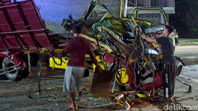 Potret Ringsek Bus Peziarah Vs Truk di Jalur Pantura Demak