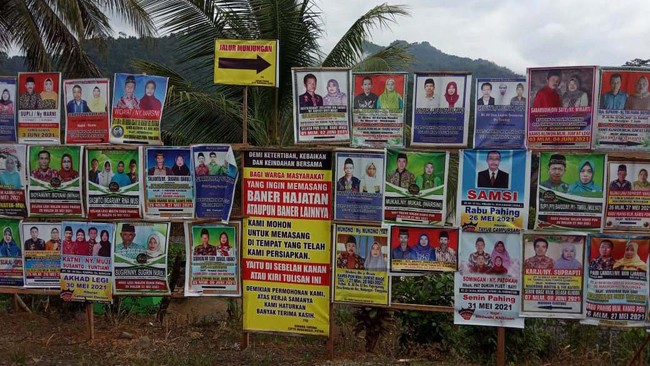 Trenggalek - Ribuan reklame terpasang di berbagai tempat di Kecamatan Munjungan, Trenggalek. Ini bukan reklame Pilkada, melainkan undangan warga yang menggelar hajatan.