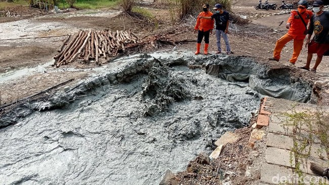 Cirebon - Semburan lumpur muncul di Desa Cipanas, Cirebon, Jawa Barat. Kemunculan semburan lumpur itu merupakan ketiga kalinya di Desa Cipanas. Berikut penampakannya.