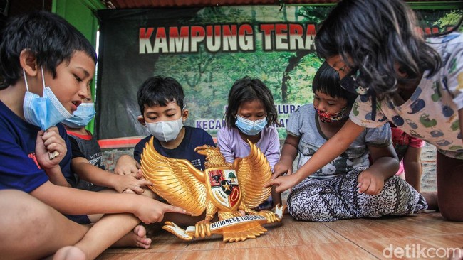 Tangerang - Beragam kegiatan digelar di Kampung Teras Pancasila guna peringati Hari Lahir Pancasila. Salah satunya mensosialisasikan nilai-nilai Pancasila pada anak-anak.