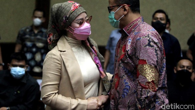 Jakarta - Eks Menteri Kelautan dan Perikanan, Edhy Prabowo jalani sidang lanjutan kasus suap ekspor benih lobster. Dalam sidang itu, Edhy Prabowo didampingi sang istri.