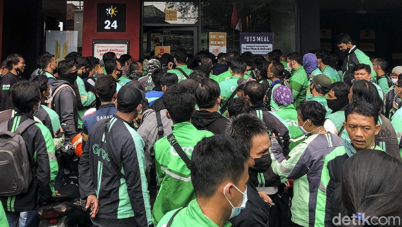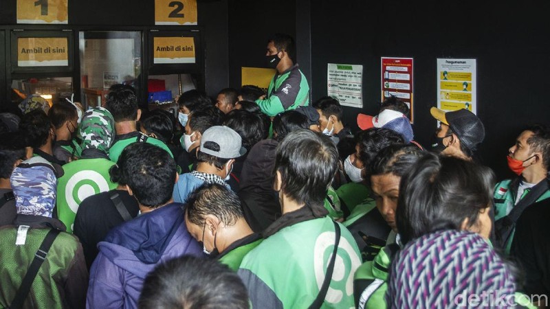 Diketahui kerumunan terjadi mulai pukul 11.00 WIB, salah satu pengemudi ojek online mengatakan ia telah antre hingga 2 jam.
