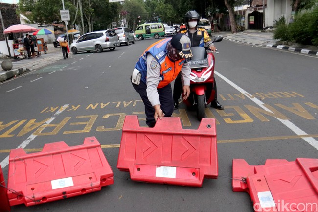 Bandung - Demi membatasi gerak masyarakat untuk menekan laju penyebaran COVID-19, jalanan di kota Bandung juga diterapkan buka tutup pada siang hari.