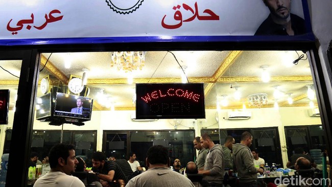 Sejumlah wisatawan Timur Tengah beraktivitas di salah satu tempat pangkas rambut yang berada di kawasan Puncak, Jawa Barat. Foto ini diambil pada Januari 2016 silam. Kini kawasan yang dikenal dengan sebutan kampung arab itu sunyi dan sepi. Dikhy Sasra/Detikcom.
