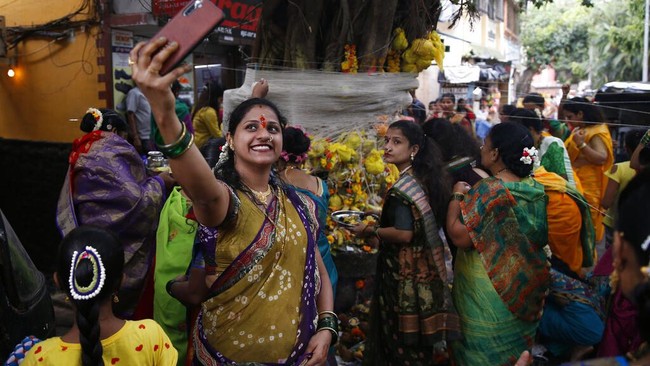 Potret Kerumunan Tanpa Masker di Festival Vat Savitri India