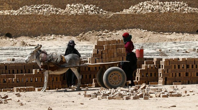 Baghdad - Sebuah desa di Baghdad masih menggunakan keledai sebagai pengangkut batu bata. Bagaimana menurut kalian gaes?