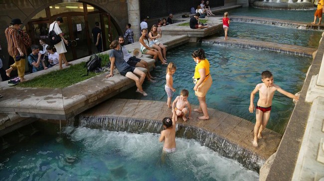 Jakarta - Rusia telah memasuki musim panas. Banyak warga yang mendinginkan diri dengan bermain air di Lapangan Manezhnaya, Moskow.