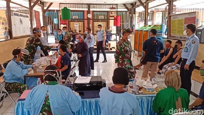 Majalengka - Ratusan warga binaan Lapas Kelas II B Majalengka menjalani vaksinasi perdana. Tercatat ada 285 warga binaan yang mengikuti vaksinasi pada Selasa (29/6).