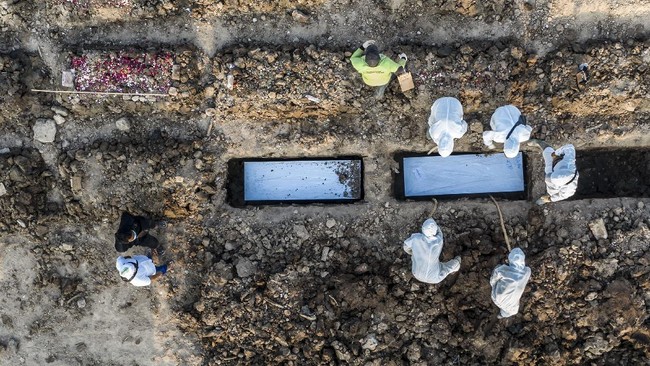 Jakarta - Data angka kasus meninggal akibat COVID-19 terus meningkat. Petugas makam pun harus siang malam melakukan pemakaman.