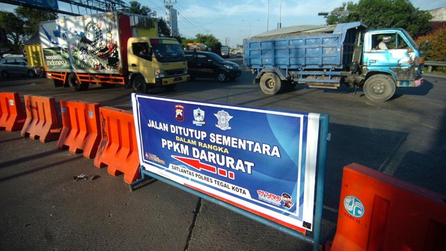 Tegal - Pemkot Tegal menutup jalur Pantura selama pemberlakuan PPKM Darurat. Penutupan jalur Pantura dilakukan guna memutus rantai penyebaran virus Corona.