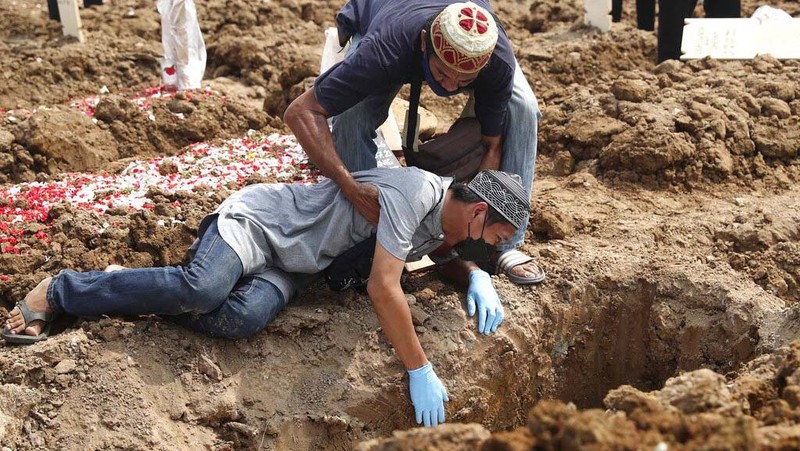 Tangis Pilu Keluarga Korban COVID-19 di TPU Rorotan BAGIKAN URL telah disalin Seorang warga menangis saat jenazah keluarganya di masukan ke dalam lubang. Tangisan keluarag korban COVID-19 di pusara keluarga. Indonesia mencatat angka kematian tetinggi akibat COVID-19 pada Rabu (7/7) kemarin dengan angka 1.040 orang.