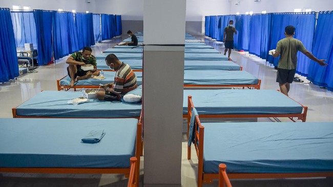 Jakarta - TNI AL menyiapkan tempat isolasi bagi pasien Corona di RSD Sakit Pangkalan Marinir Jakarta. Tempat isolasi itu disiapkan untuk mengantisipasi lonjakan COVID-19.