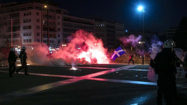 Yunani - Kerusuhan terjadi di pusat kota Athena, Yunani. Polisi bentrok dengan pendemo yang menentang vaksinasi.
