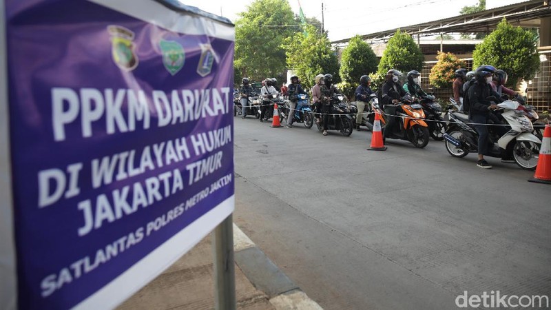 Antrean Pemotor di Pos Penyekatan Kalimalang saat PPKM Diperpanjang