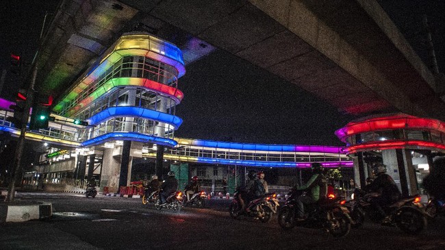 Keren! Halte CSW Jakarta Berhiaskan Lampu Warna-warni