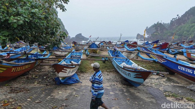 Gunungkidul - Sudah sepekan lebih ratusan nelayan di Pantai Ngrenehan, Kapanewon Saptosari, Gunungkidul tidak melaut imbas cuaca buruk.