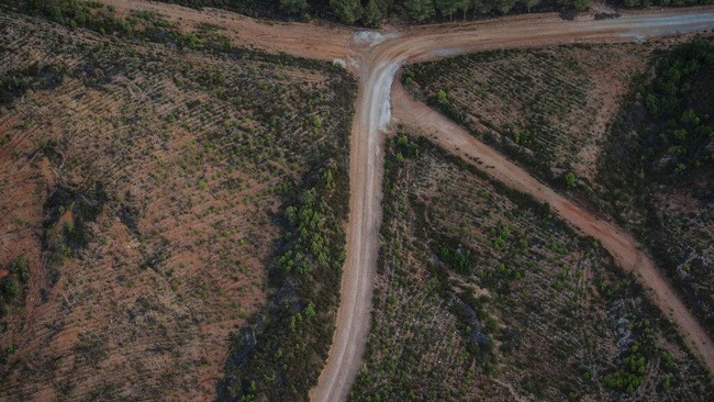 Pemandangan dari helikopter pemadam kebakaran Gendarmerie Turki, menunjukkan akibat kebakaran hutan di provinsi Mugla, Turki selatan. AP Photo/Emre Tazegul