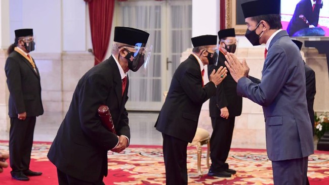 Jakarta - Presiden Jokowi menganugerahi ratusan tokoh tanda kehormatan. Tanda kehormatan yang diberikan mulai Bintang Mahaputera Adipradana hingga Bintang Jasa Utama.