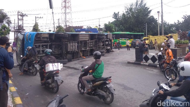 Potret Damri Terguling di Medan Usai Tabrakan dengan Truk
