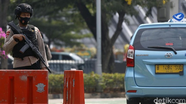 Jakarta - Ganjil genap terus diberlakukan seiiring dengan diperpanjangnya PPKM level 4. Pemberlakuan ganjil genap itu juga mendapat penjagaan polisi bersenjata.