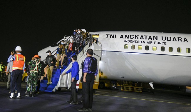 Jakarta - 26 WNI yang berhasil dievakuasi dari Afghanistan mendarat di Bandara Halim Perdana Kusuma, Jakarta. Mereka dievakuasi menggunakan pesawat TNI AU.