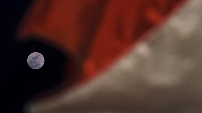 Nusa Tenggara Barat - Fenomena bulan biru "blue moon" terlihat di langit Lombok, Mataram, NTB. Fenomena ini hanya dapat dilihat setiap dua atau tiga tahun sekali.