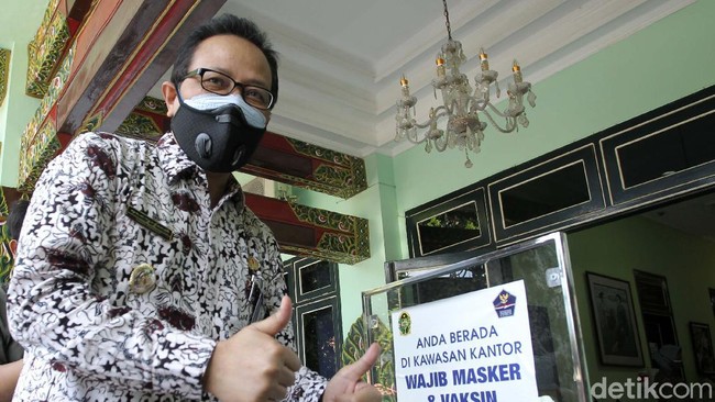 Yogyakarta - Kompleks Balai Kota Yogyakarta menerapkan aturan wajib masker dan vaksin COVID-19. Hal ini untuk menciptakan herd imunity di lingkup perkantoran balai kota.